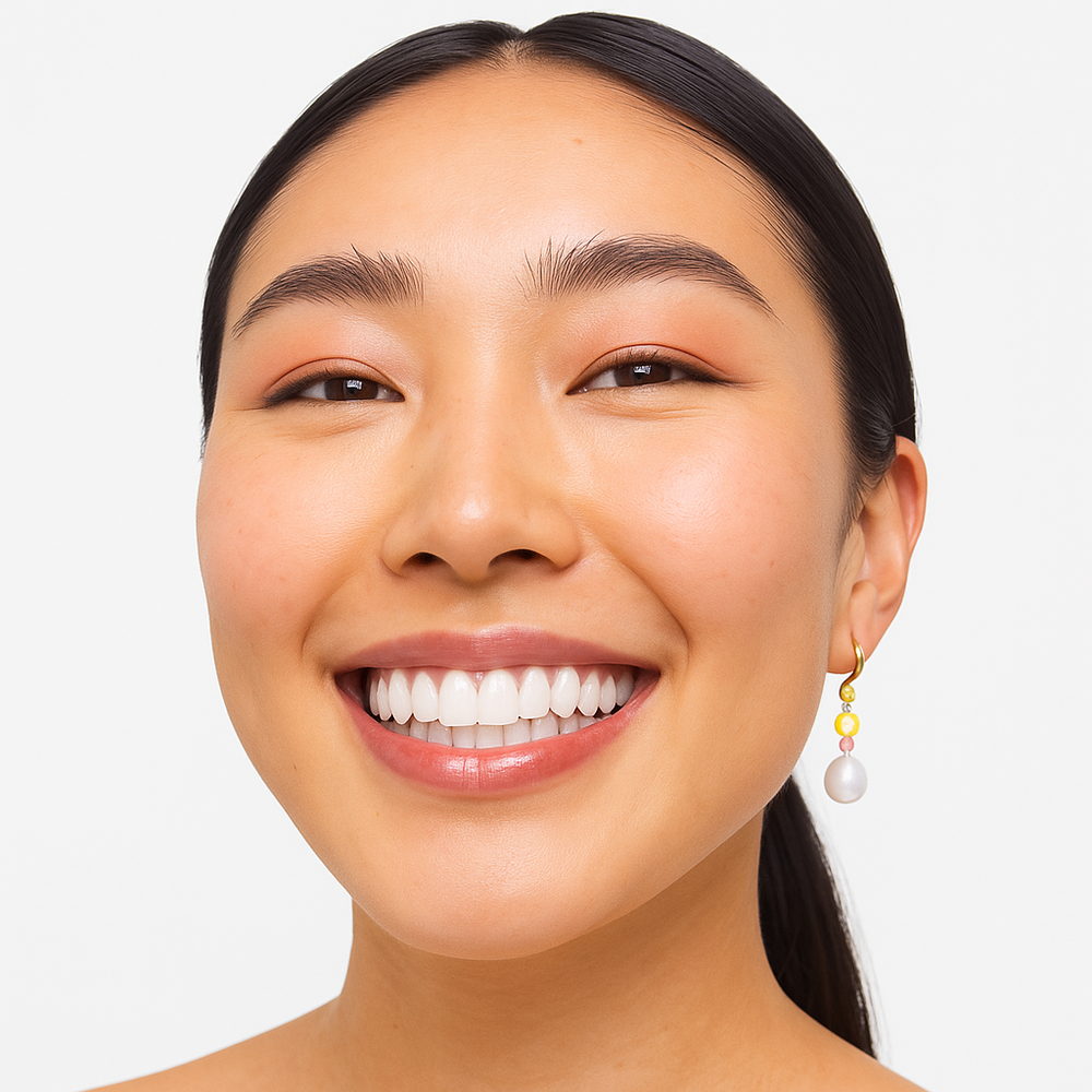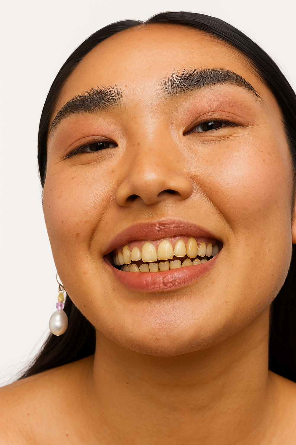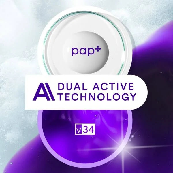 El PAP+ actúa en cuanto toca el diente: se fija a la superficie y reduce y elimina las manchas, aclarando el diente poco a poco. Luego entra V34, una corrección de color inmediata que neutraliza el amarillo para un efecto de foto. Juntos, consigues impacto ahora y progreso con el uso.